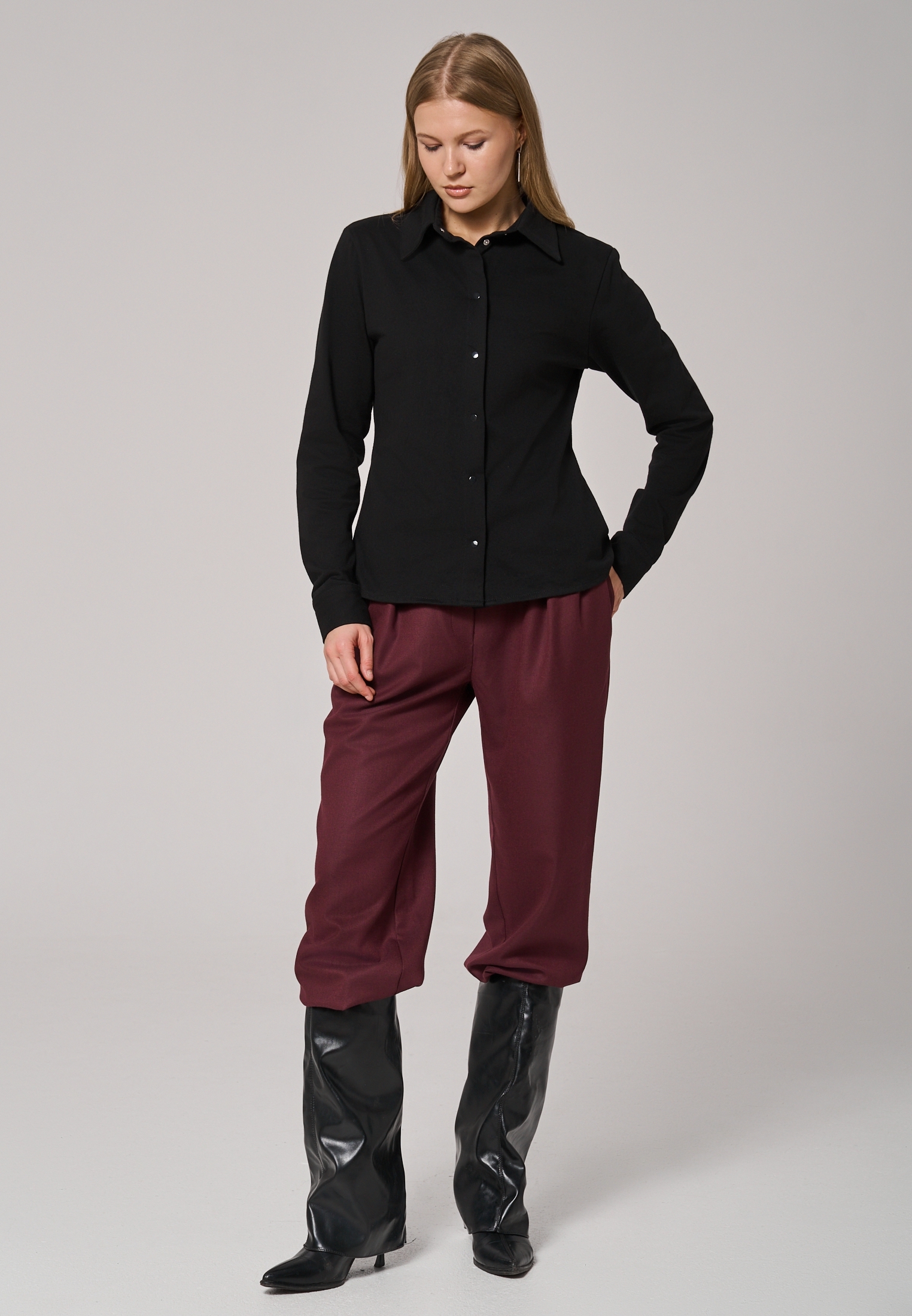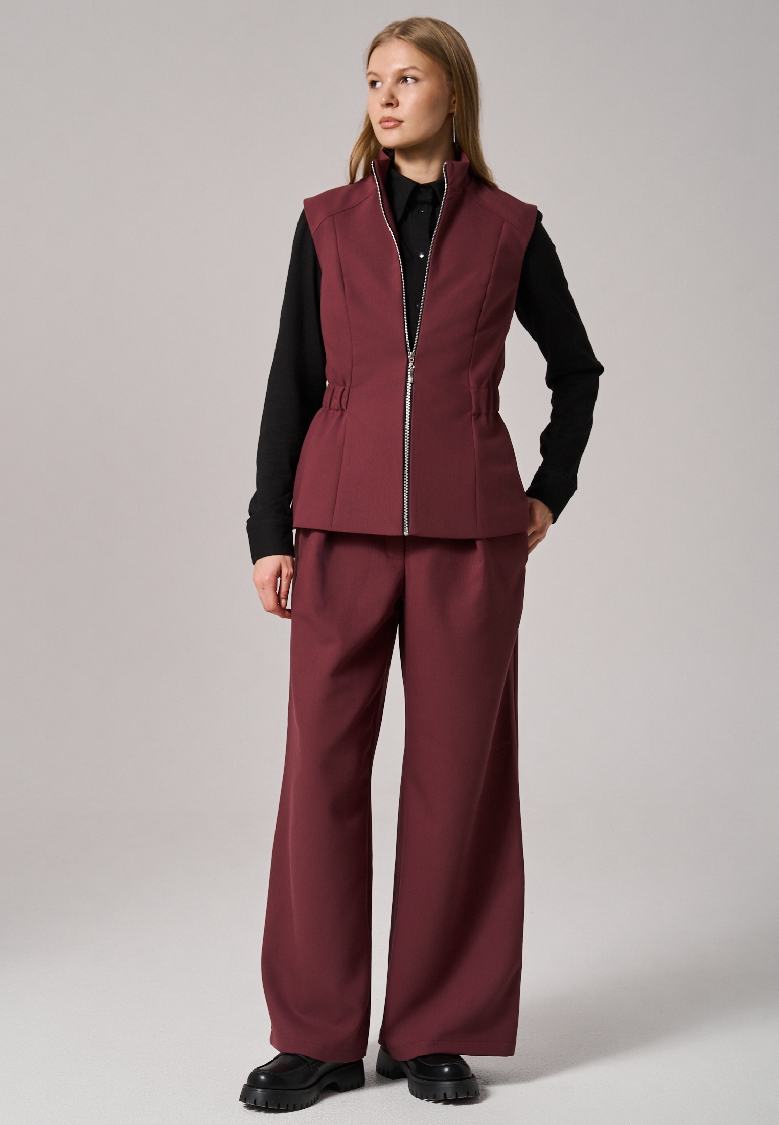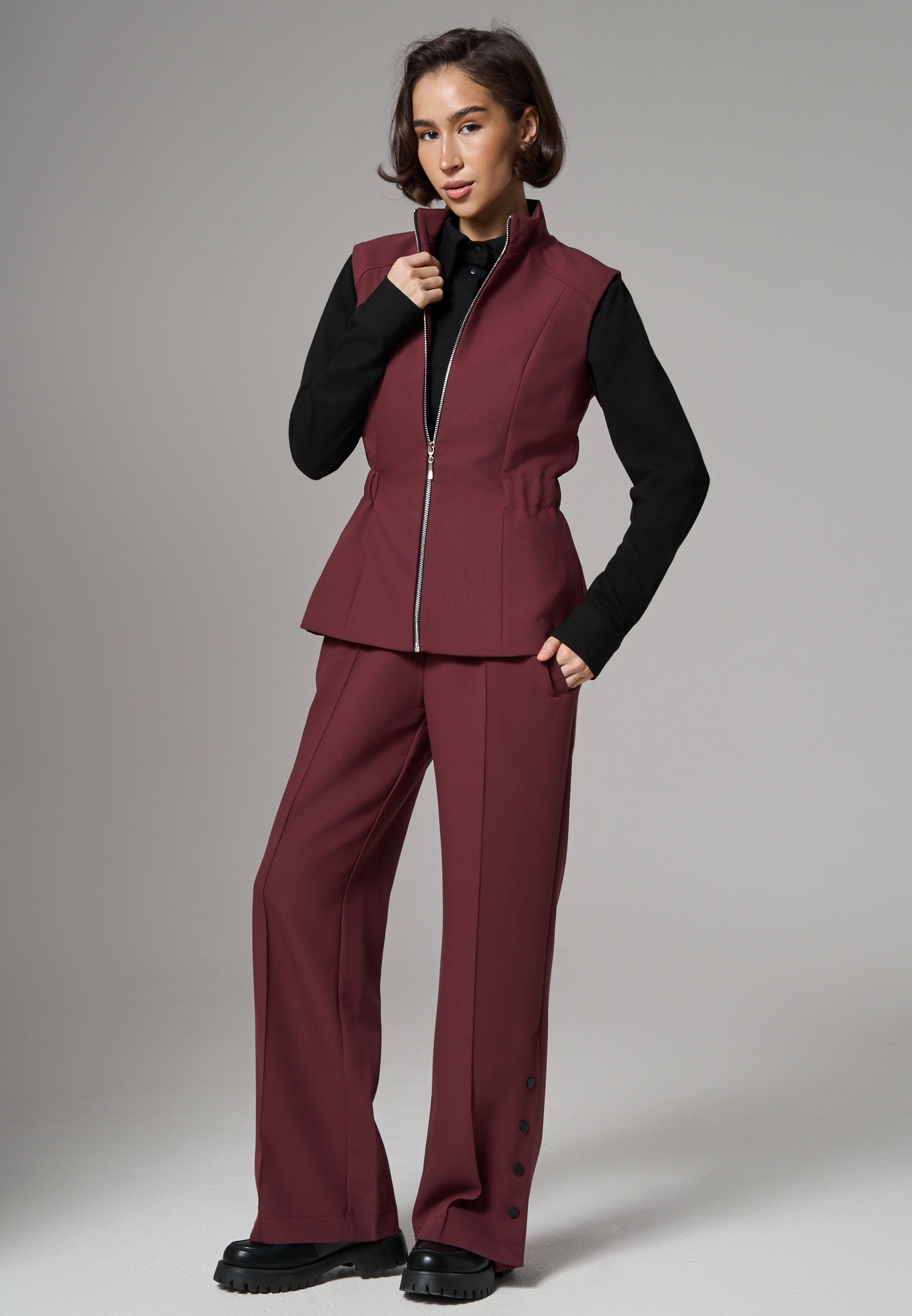 Универсальные прямые брюки для стильного образа с характером UMATNO’ и акцентом на функциональность. Металлические кнопки с прорезиненным покрытием soft-touch позволяют создавать прямой силуэт или эффект клеш. Пояс на резинке обеспечивает комфортную посадку для любого типа фигуры. Ткань премиум-класса обеспечивает идеальный внешний вид, долговечность изделия , практически не мнется и неприхотлива в уходе. Трендовые оттенки сезона дополнят ваш гардероб яркими акцентами. Эти брюки можно миксовать с любыми вещами и обувью, чтобы создавать неповторимые деловые и неформальные образы. Для высоких девушек длина брюк идеальна с лоферами, кроссовками или туфлями на низком каблуке.