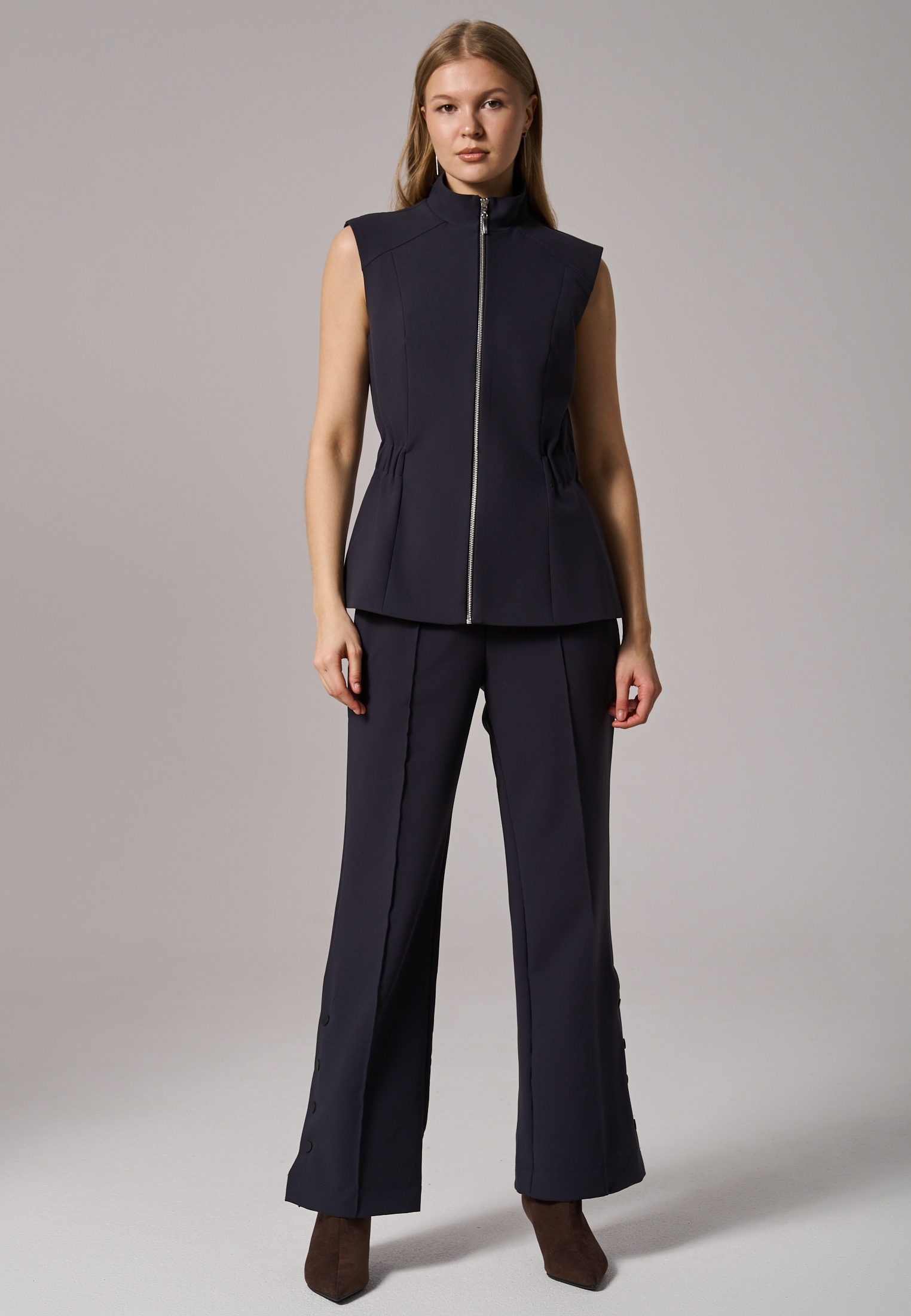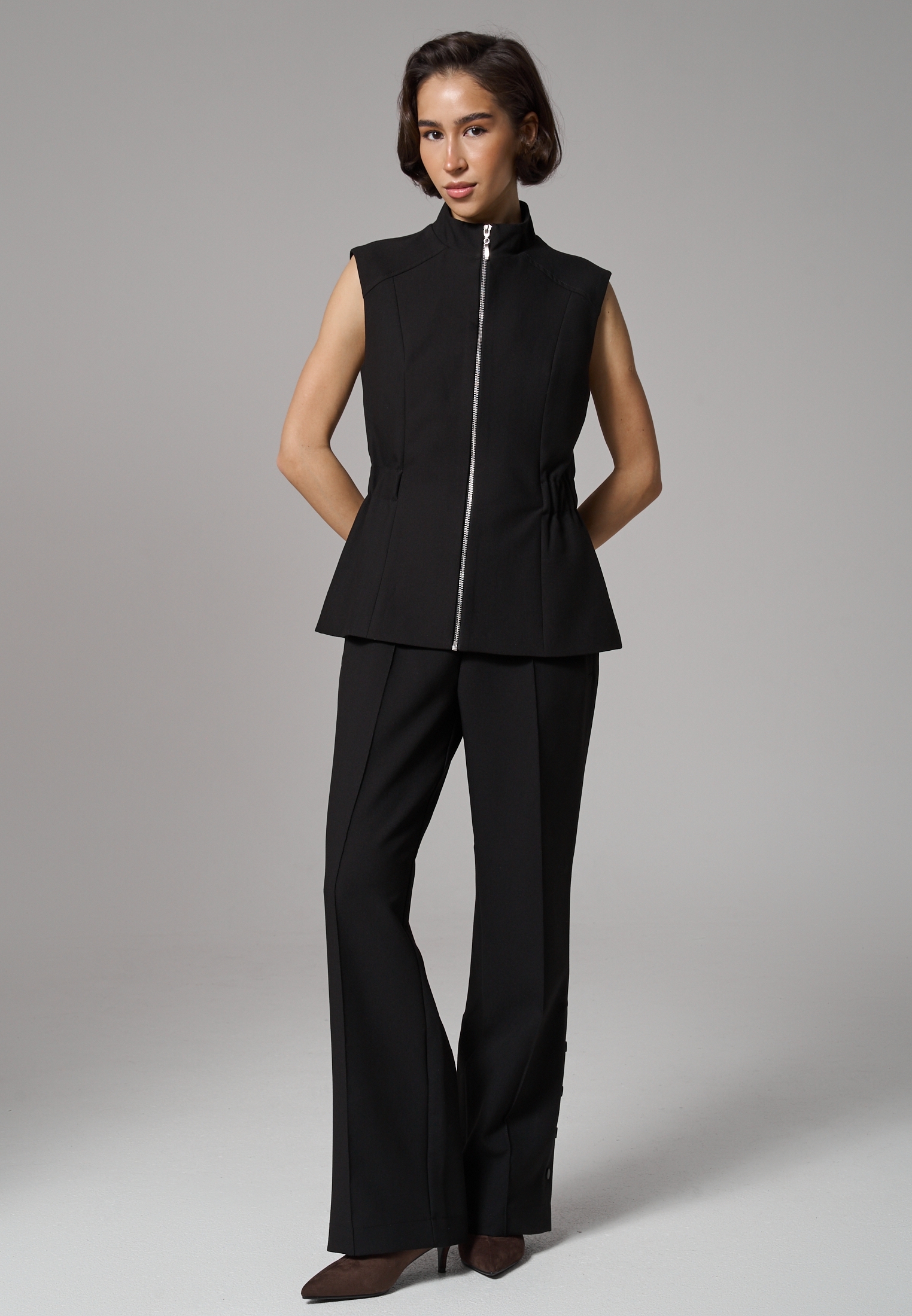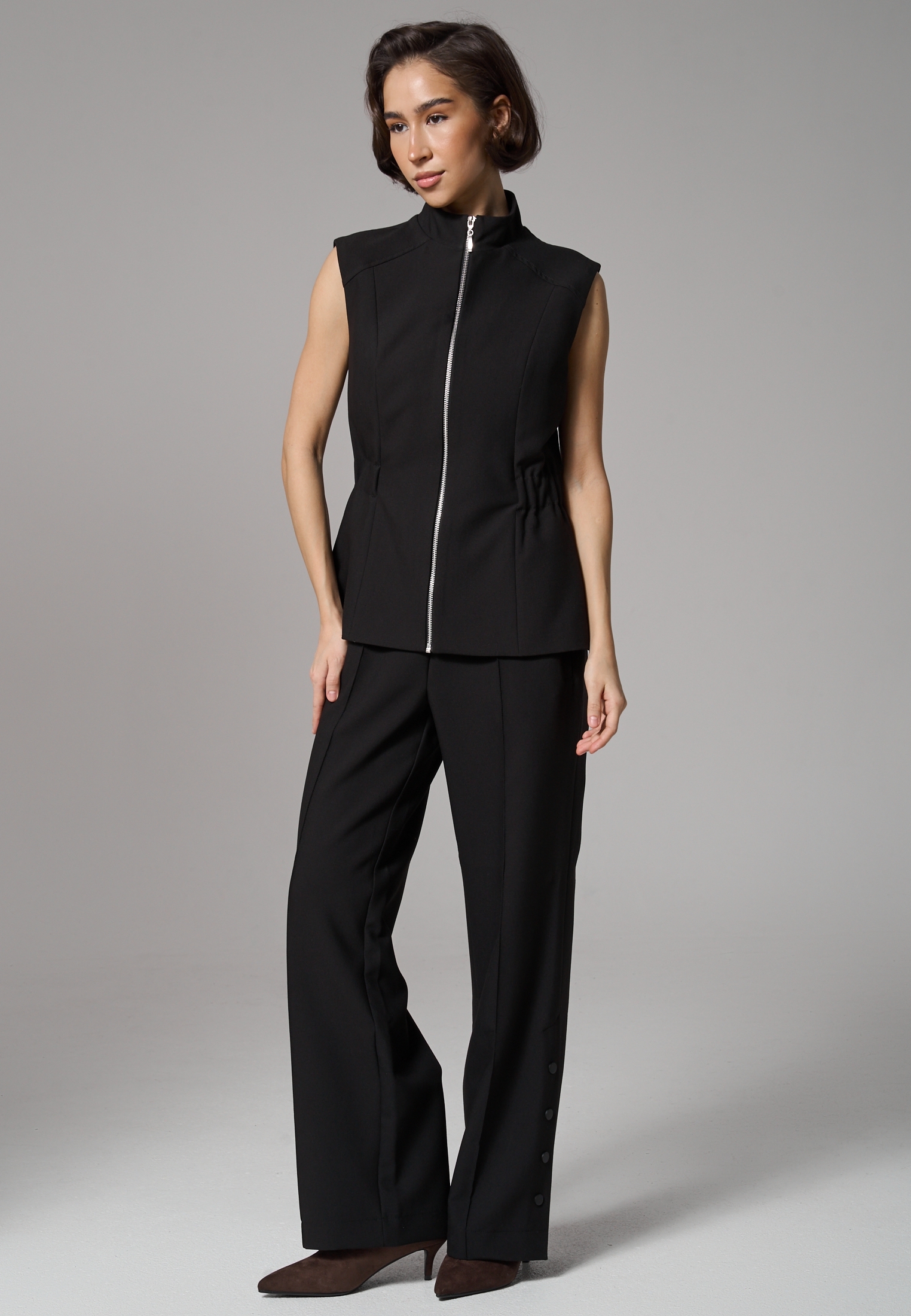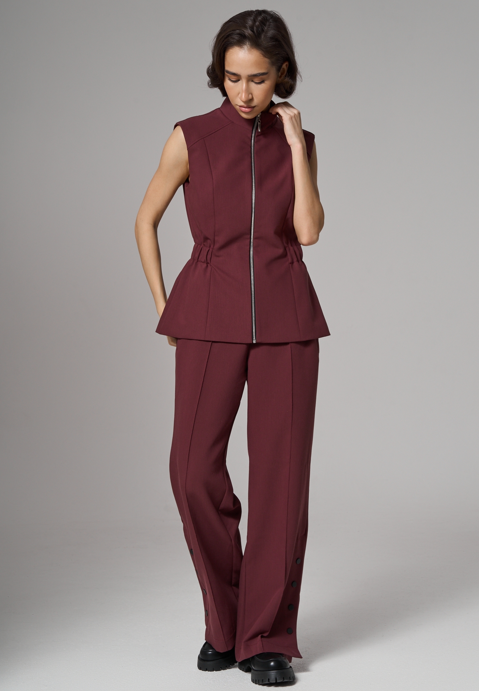 На модели размер S. Рост 172 см. Обхват груди 83 см, талии 62 см, бедер 88 см.